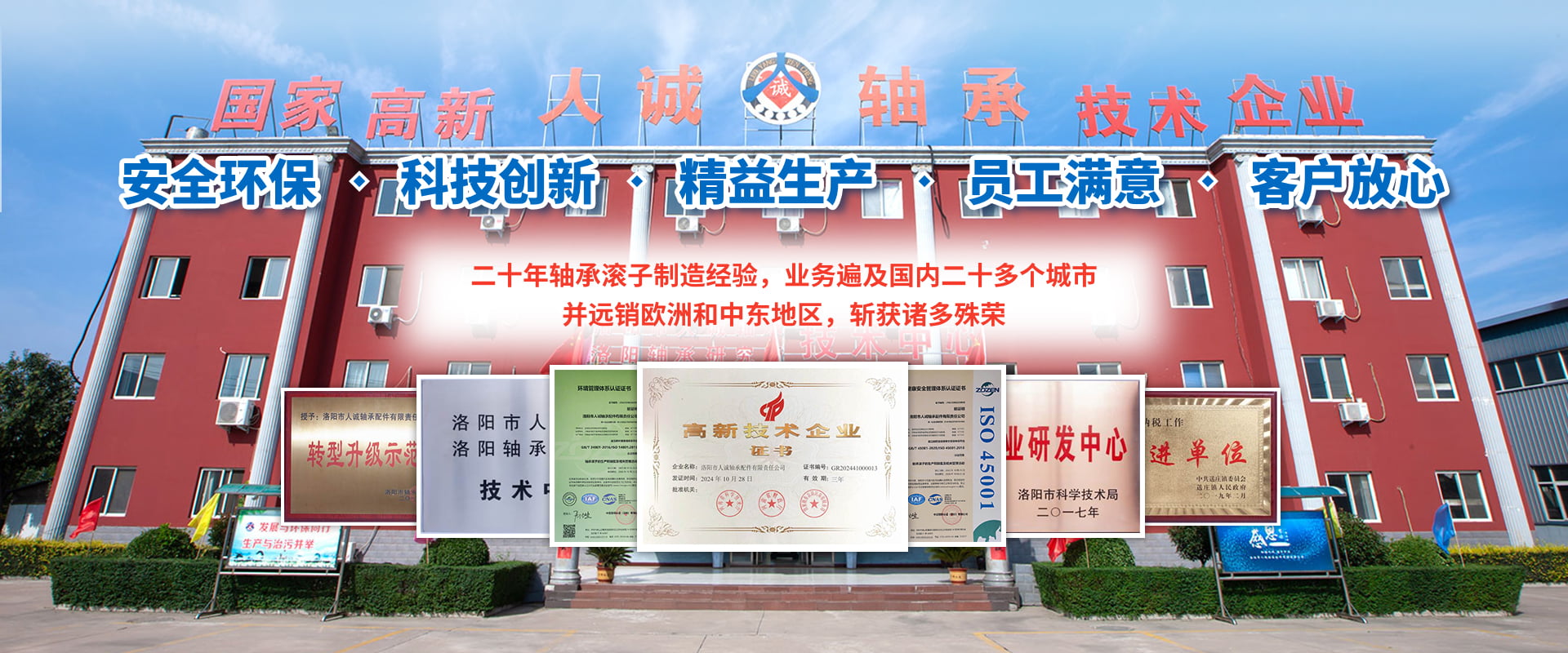 洛陽(yáng)市人誠(chéng)軸承配件有限責(zé)任公司成立于2003年,2015年由洛陽(yáng)搬遷至孟津循環(huán)經(jīng)濟(jì)區(qū)送莊鎮(zhèn)梁新路,占地60畝,建筑面積20000余平方米。公司專(zhuān)注生產(chǎn)高精圓錐軸承滾子,可根據(jù)客戶(hù)需求研發(fā)及來(lái)樣加工,年產(chǎn)精品滾子4億粒。 我們始終堅(jiān)持“安全環(huán)保、科技創(chuàng)新、精益生產(chǎn)、員工滿(mǎn)意、客戶(hù)放心”的經(jīng)營(yíng)理念。先后與河南科技大學(xué)、洛陽(yáng)師范學(xué)院、方智測(cè)控合作,并與國(guó)家洛陽(yáng)軸承研究所聯(lián)合成立“技術(shù)中心”,建立了良好的產(chǎn)學(xué)研合作機(jī)制,為公司的創(chuàng)新發(fā)展打下了堅(jiān)實(shí)的基礎(chǔ)?! ?018年公司被認(rèn)定為國(guó)家高新 技術(shù)企業(yè),通過(guò)了IATF16949:2016質(zhì)量管理體系、環(huán)境管理體系、職業(yè)健康安全管理體系、知識(shí)產(chǎn)權(quán)管理體系等多項(xiàng)認(rèn)證。擁有完善的檢測(cè)手段,先進(jìn)的工藝,穩(wěn)定的設(shè)備,優(yōu)良的服務(wù)。公司董事長(zhǎng)葉會(huì)卿為洛陽(yáng)市工商聯(lián)副主席,洛陽(yáng)市軸承滾子行業(yè)協(xié)會(huì)會(huì)長(zhǎng),法人李?lèi)?ài)芳女士從事軸承滾子制造30余年,積累了豐富的生產(chǎn)管理經(jīng)驗(yàn),誠(chéng)實(shí)守信、務(wù)實(shí)、合作、共贏(yíng)的作風(fēng)深受業(yè)界好評(píng)。